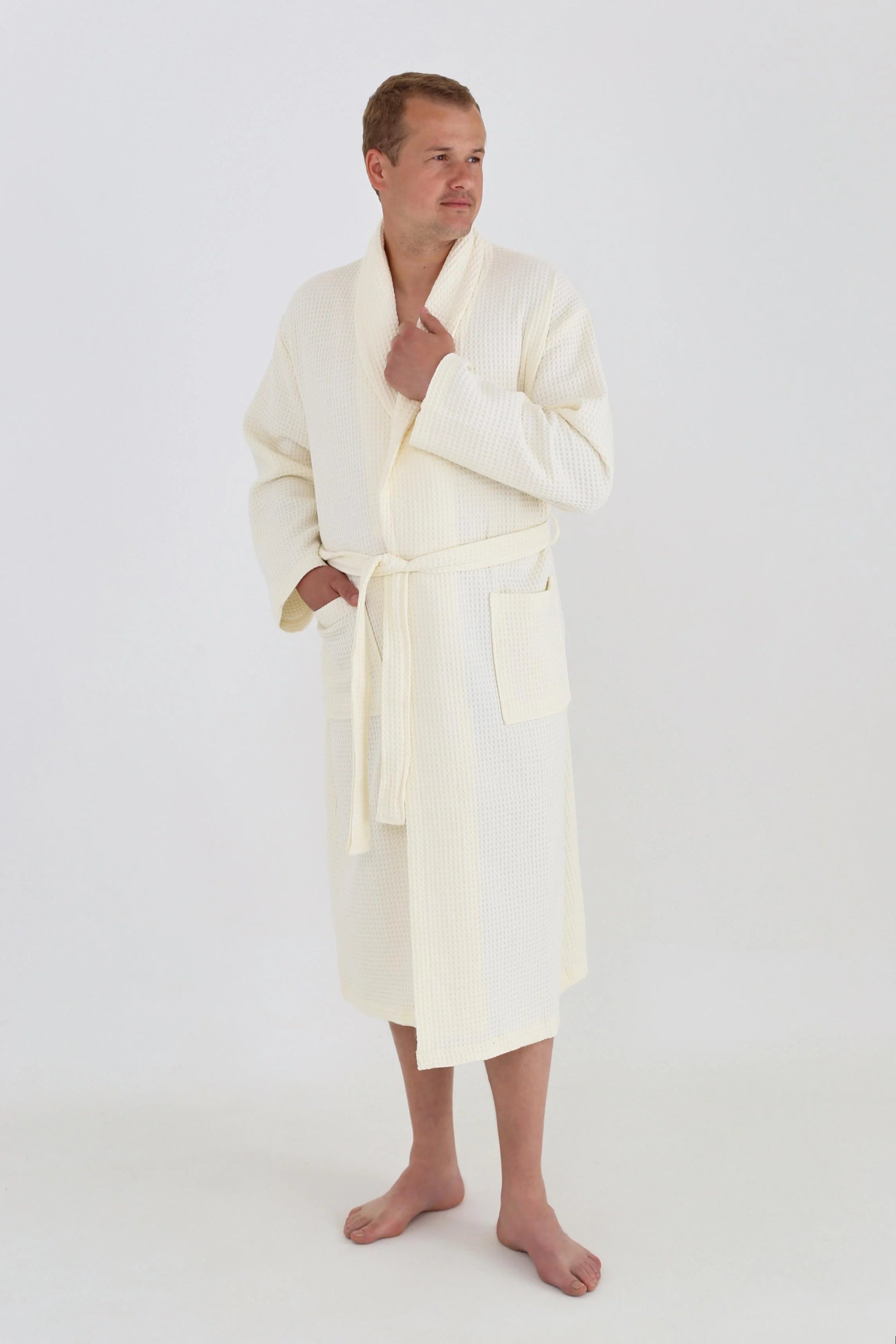 Подаруйте собі відчуття комфорту та свіжості з вафельним халатом-кімоно, виготовленим з натуральної 100% бавовни. Завдяки щільності 320 г/м² халат добре вбирає вологу, не створює парникового ефекту, швидко сохне та дарує приємні тактильні відчуття.