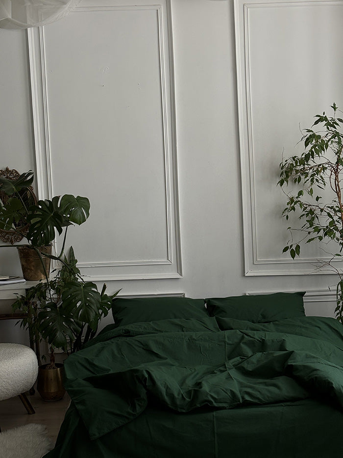 Склад тканини: 85% бавовна, 15% поліестер — така комбінація гарантує оптимальне поєднання м’якості, повітропроникності та легкості в догляді. Постіль не скочується, не сідає, не втрачає форми.