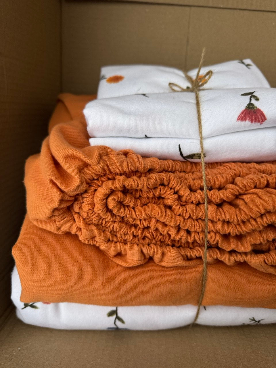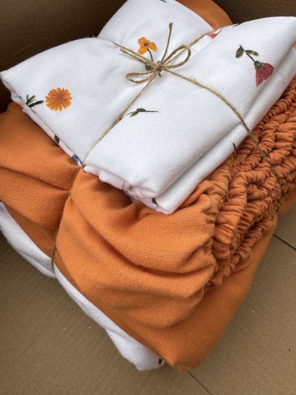 3. Простирадла помаранчевого кольору (стандарт, але можна за додаткову плату зробити на резинці)