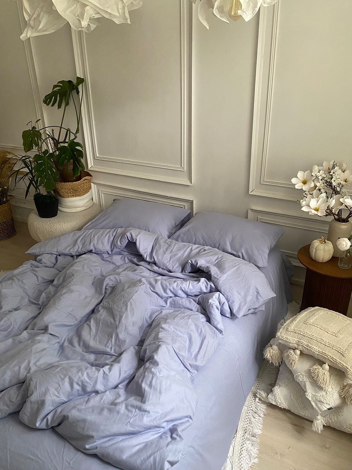 Комплект виготовлений із якісної натуральної тканини щільністю 160 г/м², що забезпечує міцність, довговічність і комфорт у використанні. Матеріал не електризується, не парить і залишається м’яким навіть після багатьох прань.