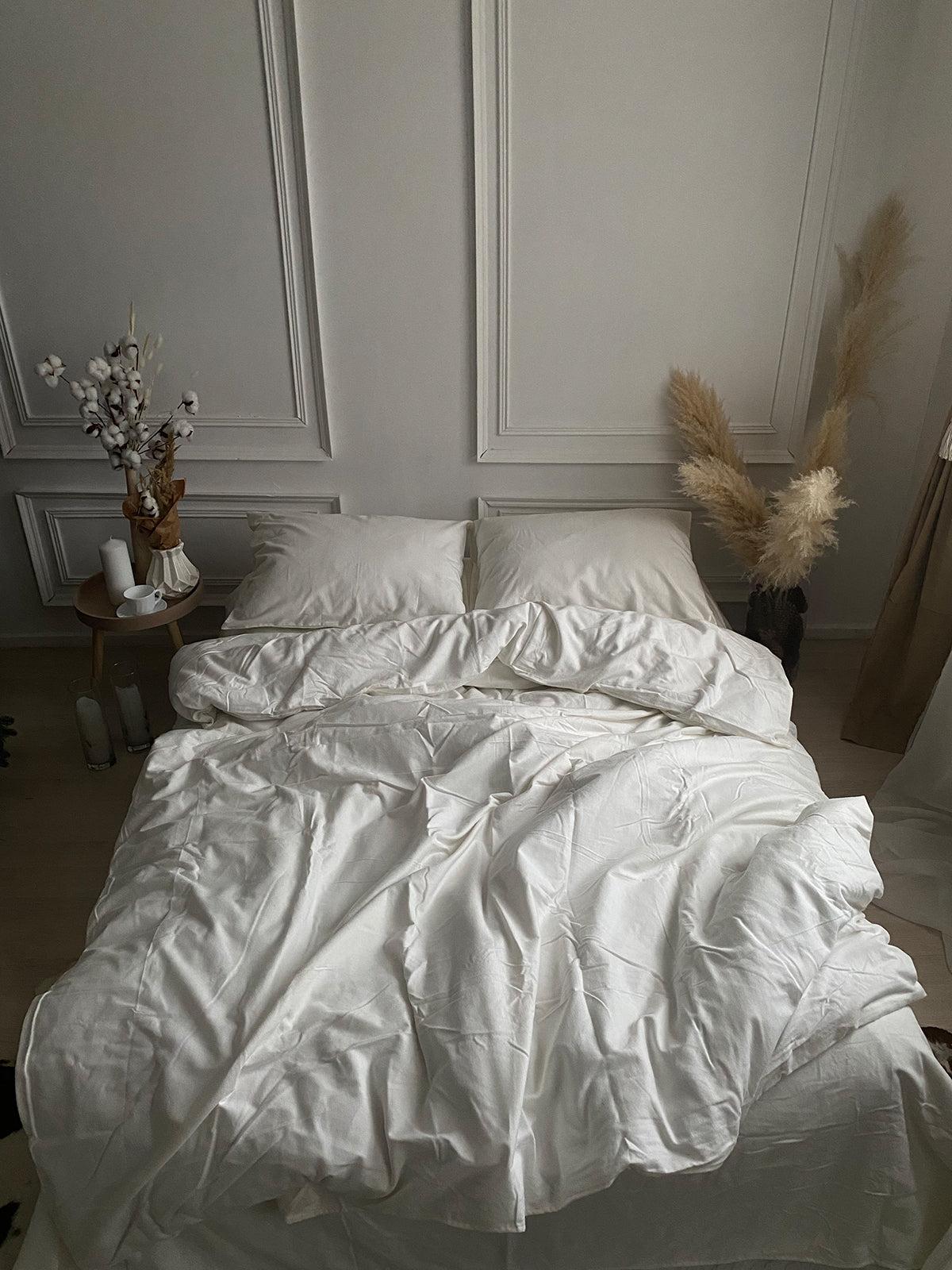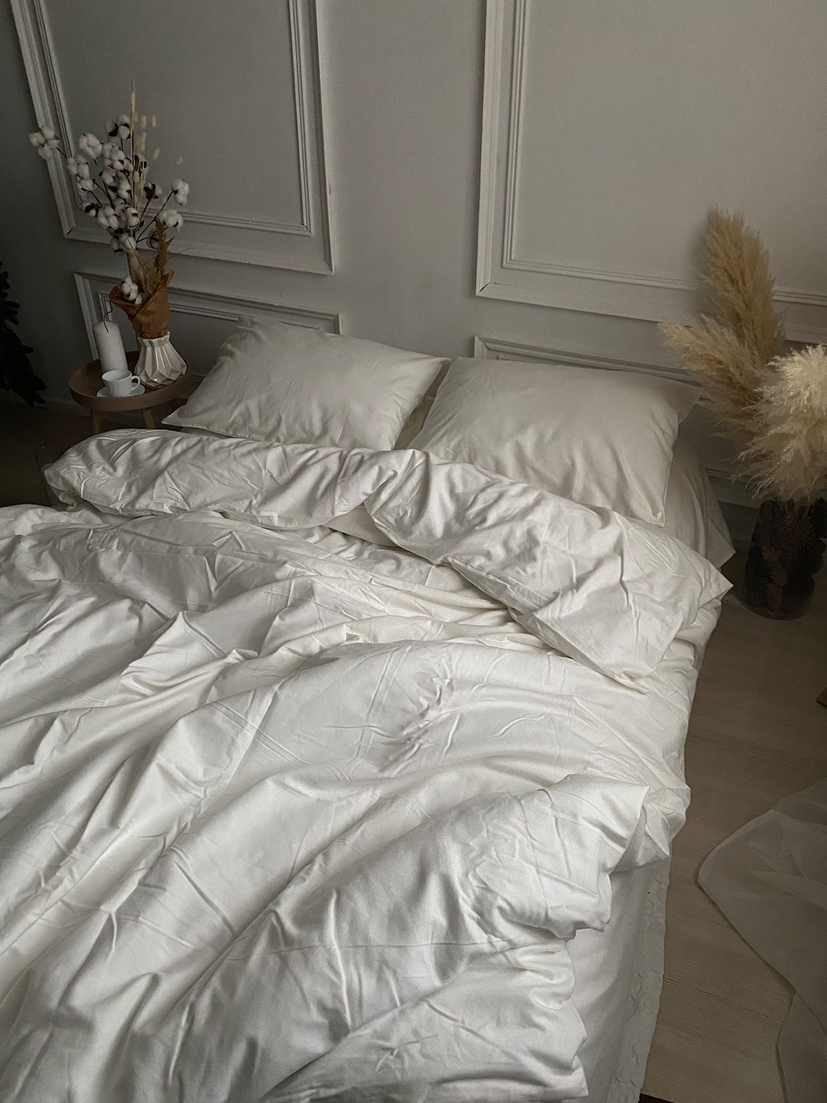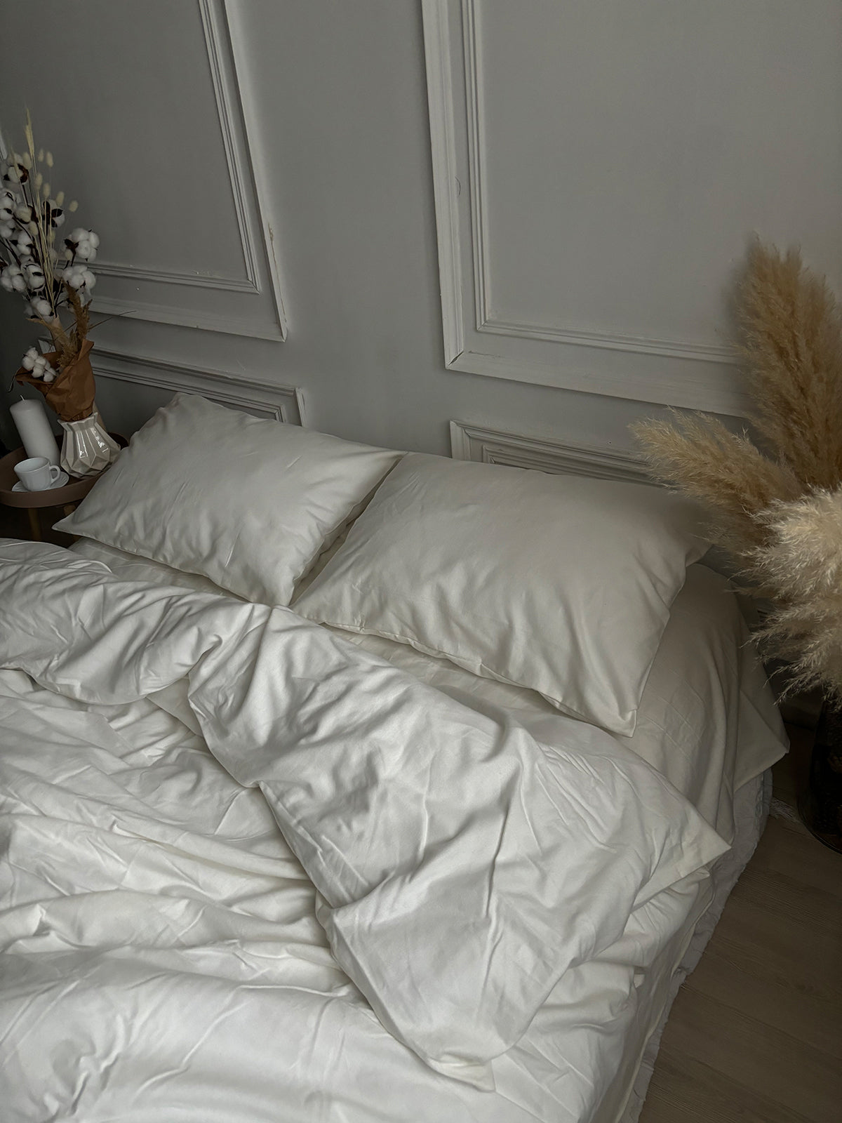 Комплект виготовлений із якісної натуральної тканини щільністю 160 г/м², що забезпечує міцність, довговічність і комфорт у використанні. Матеріал не електризується, не парить і залишається м’яким навіть після багатьох прань.