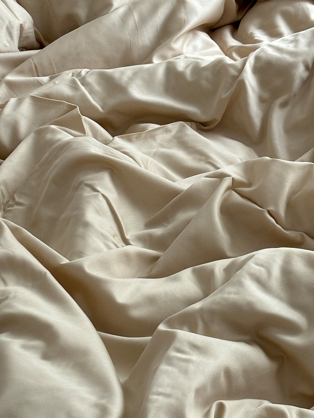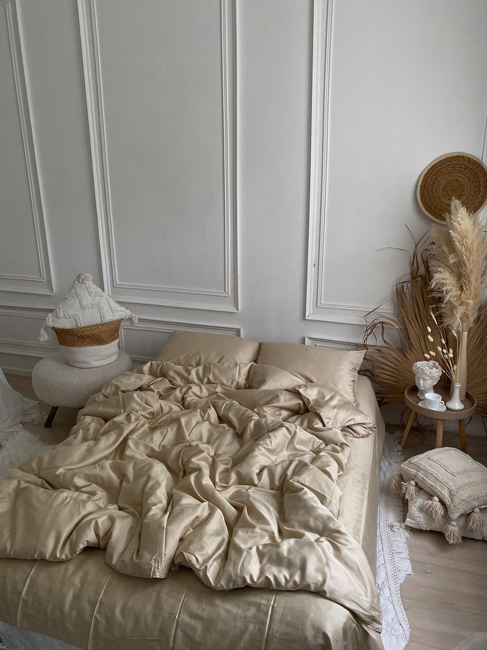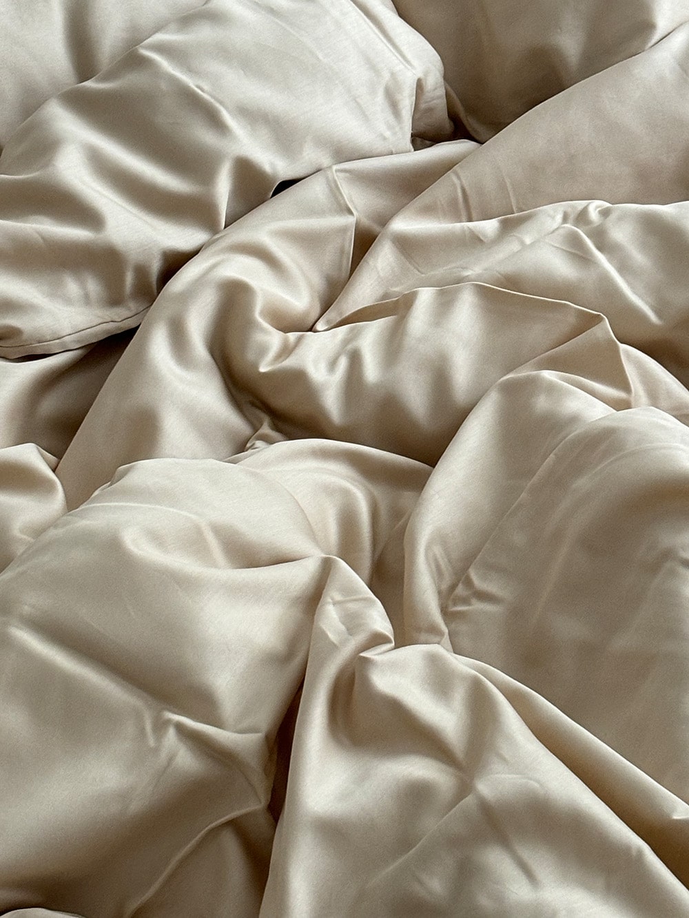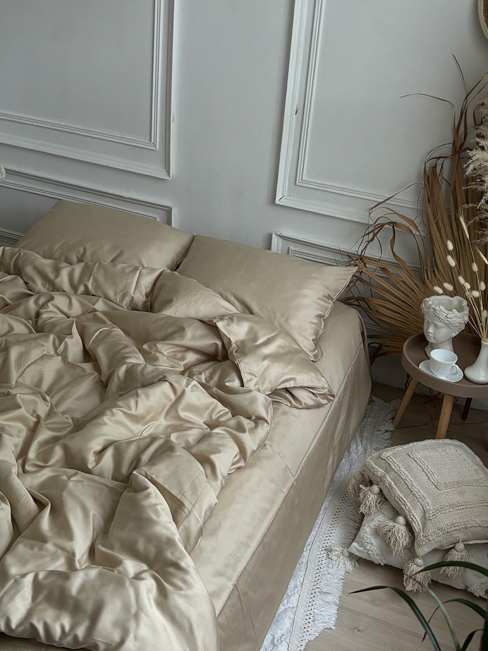 Сатинова білизна – зроблена з дуже якісної та 100% натуральної бавовни із особливим переплетенням ниток. Завдяки цьому з одного боку ніби сяє, потрапляючи під сонячні промені. Тканина міцна й легка водночас. Витримує величезну кількість прань, не переймаючись за колір та форму.