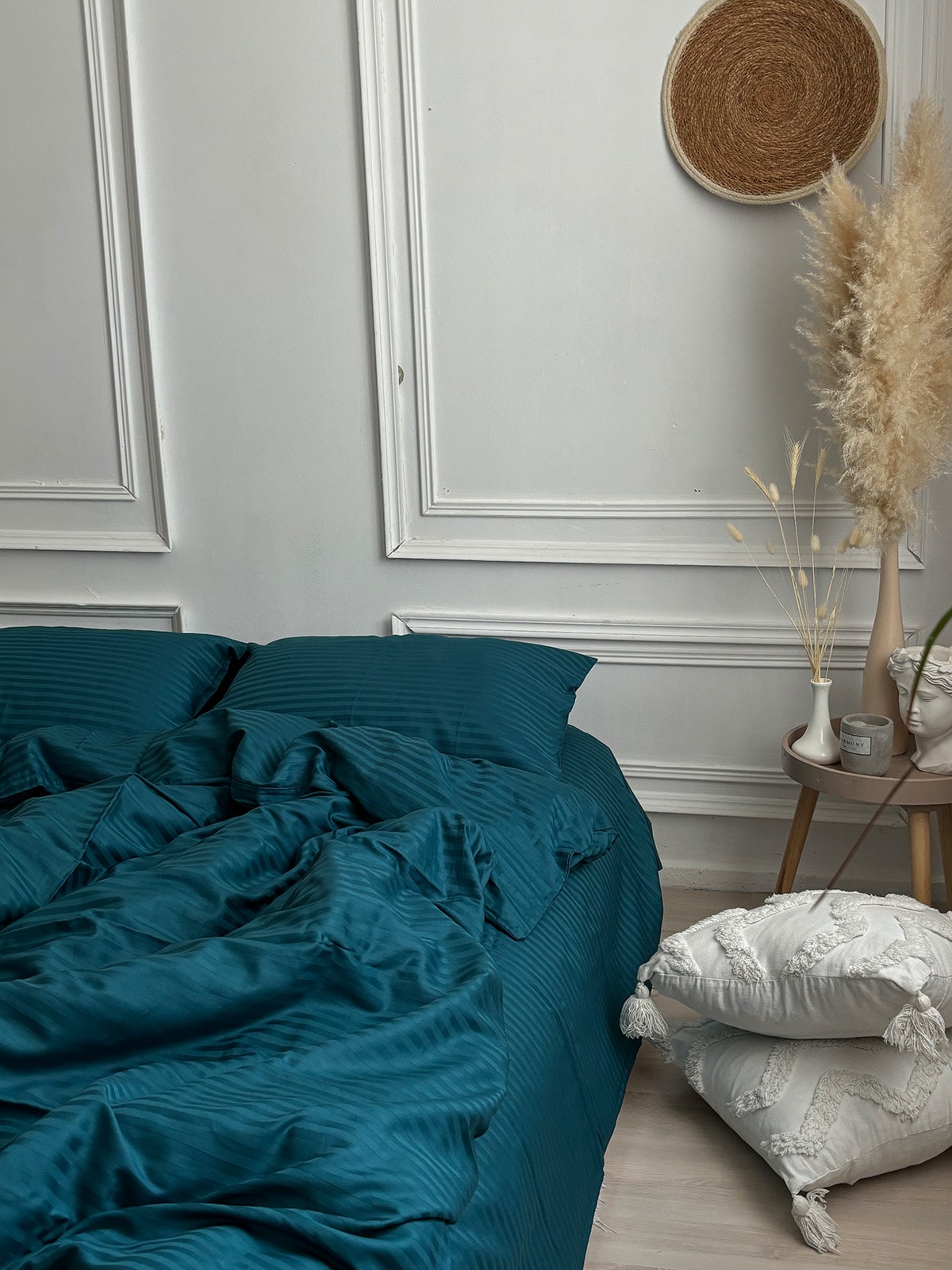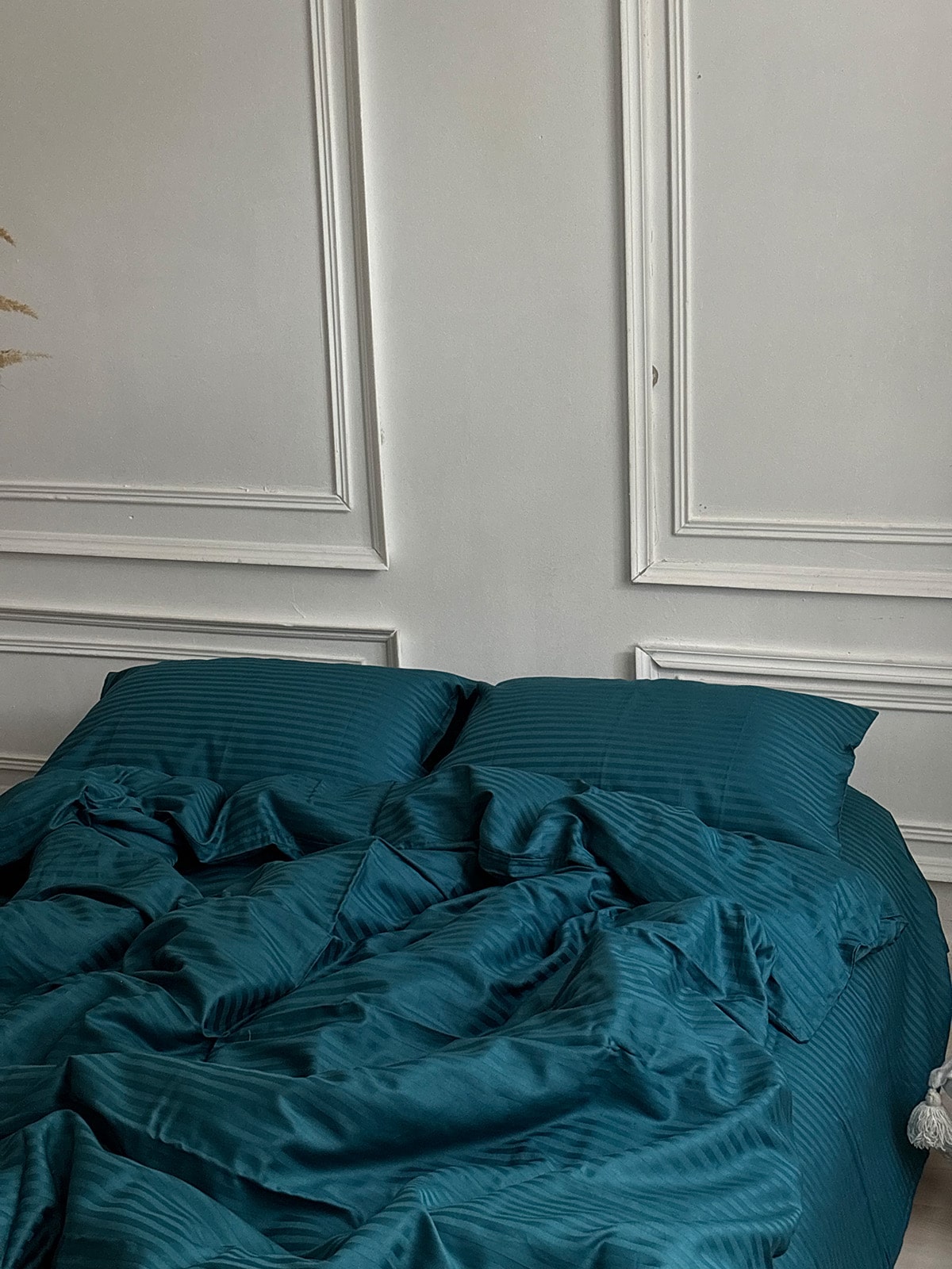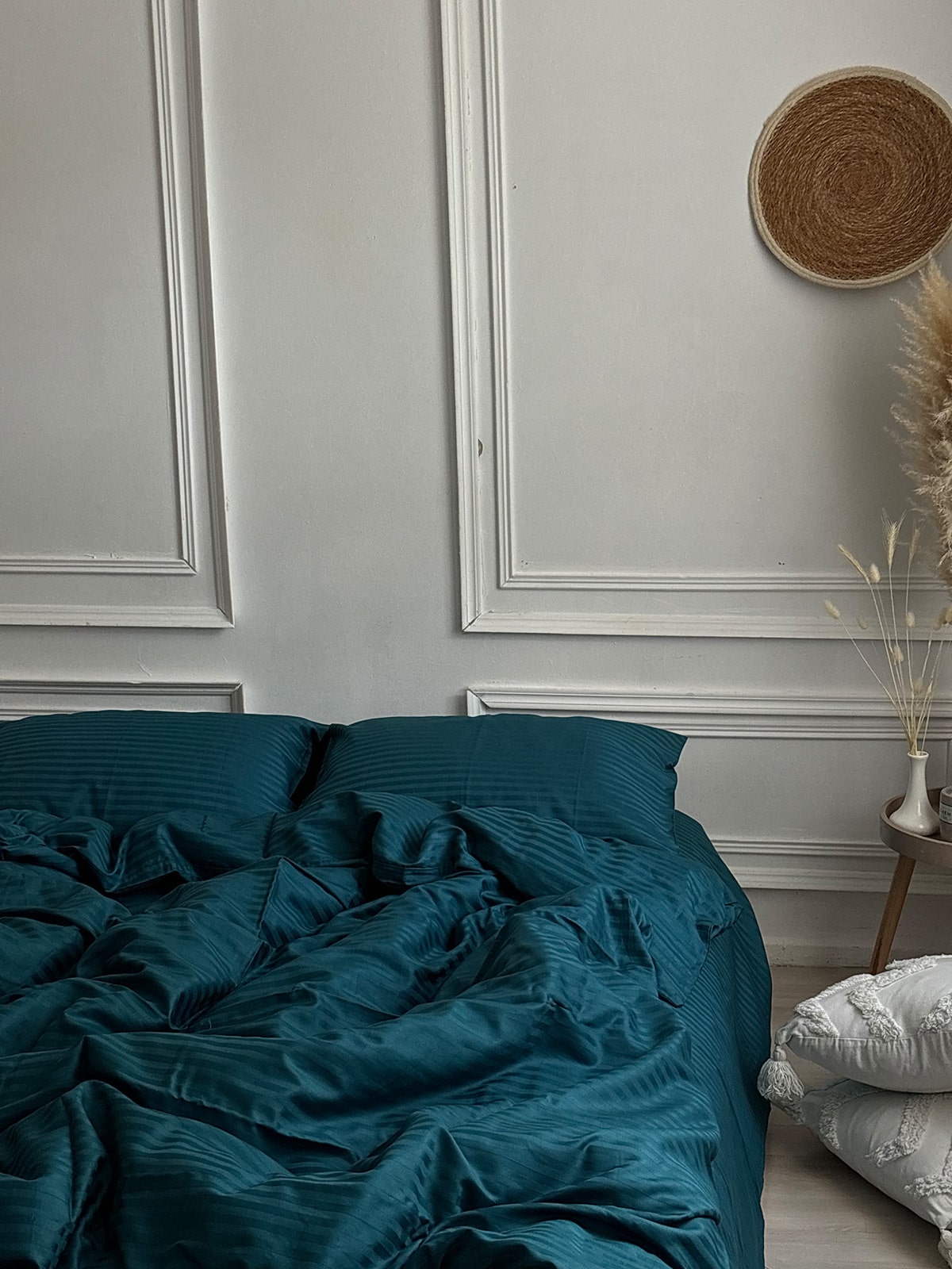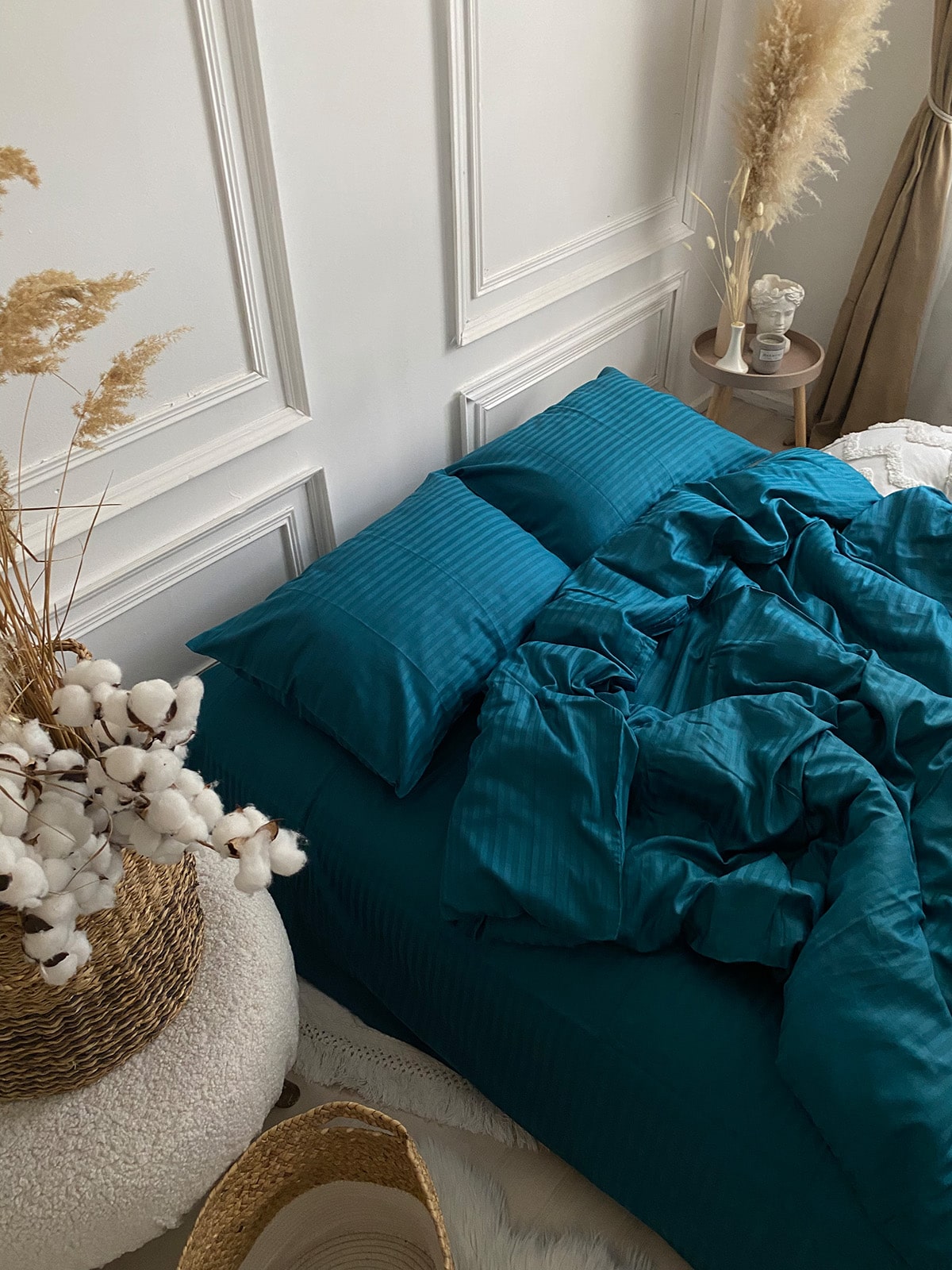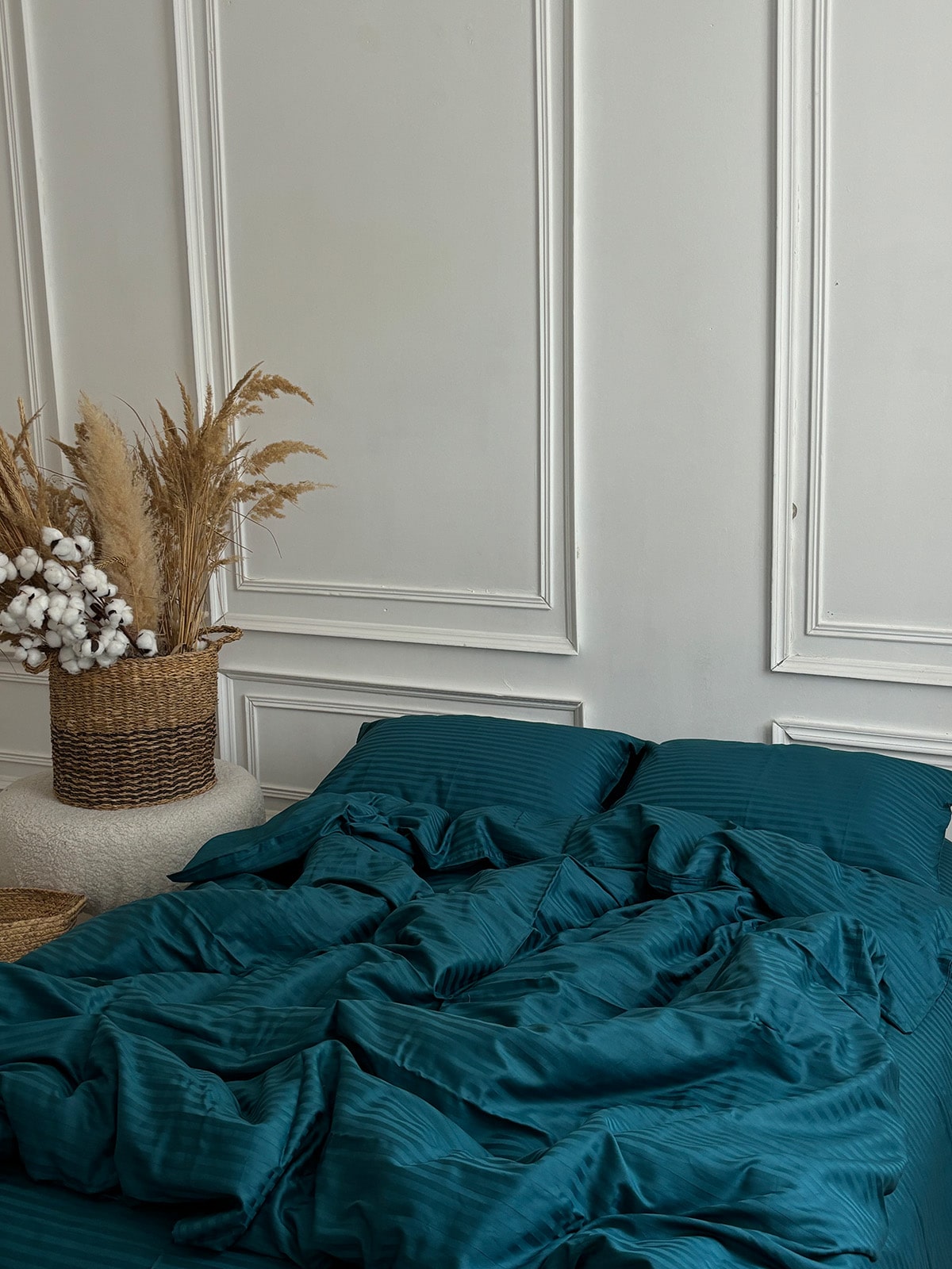 Постільна білизна з страйп сатину 100% бавовна — це поєднання вишуканої естетики та практичності для щоденного використання. Виготовлений із натуральної бавовняної тканини преміум-класу, цей комплект має гладку, шовковисту поверхню з характерним блиском та структурним візерунком у вигляді смужки шириною 1 см.