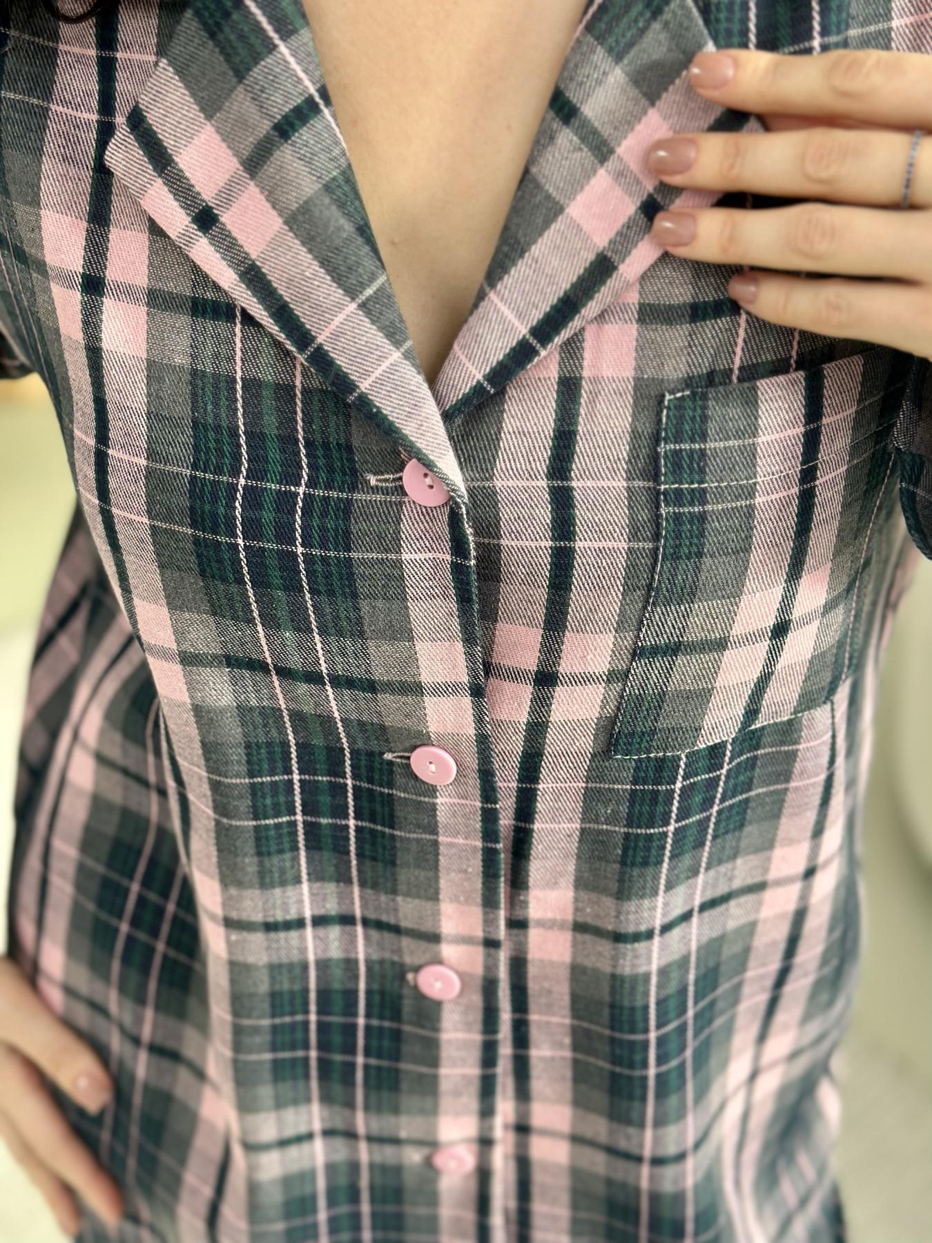 Жіночий демісезонний фланелевий піжамний комплект - втілення домашнього затишку та комфорту. Тепла, дуже м’яка тканина з легким двостороннім начосом дарує відчуття обіймів вже з першого дотику. Ідеальний вибір для прохолодних вечорів та зимових ночей.
