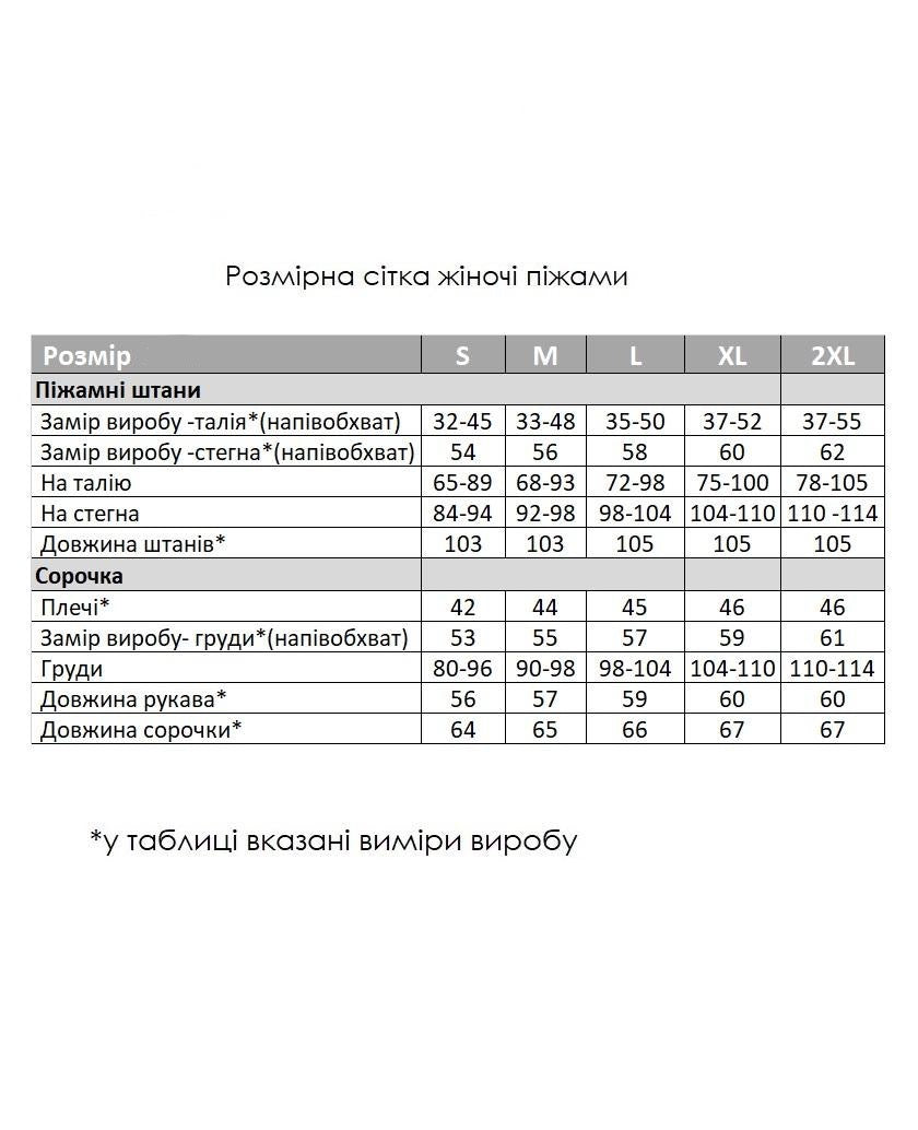 Комплект складається з сорочки на ґудзиках і зручних штанів середньої посадки з кишенями, еластичною резинкою та регульованою куліскою — для максимального комфорту вдома.