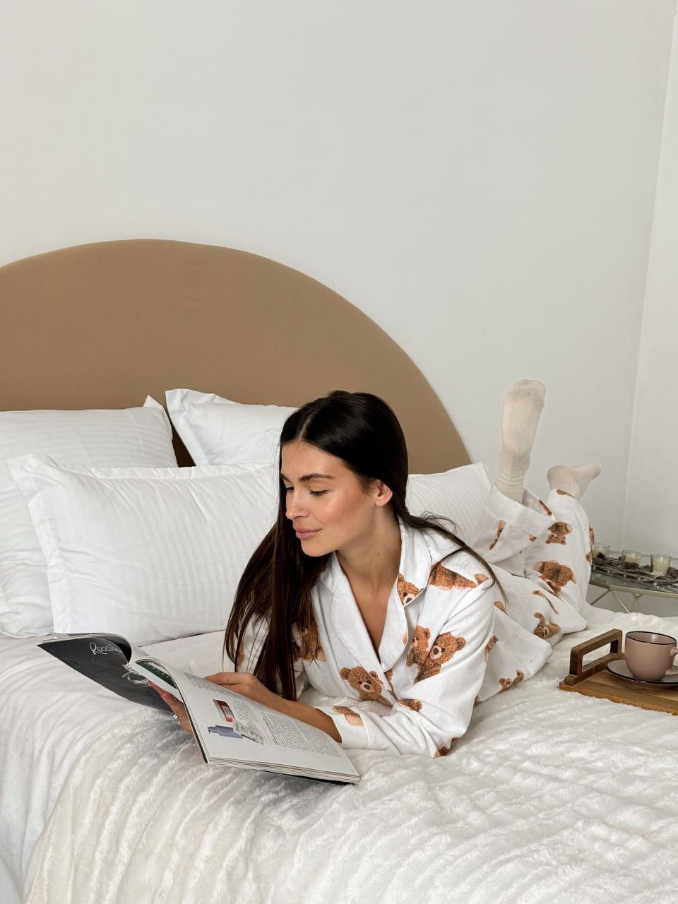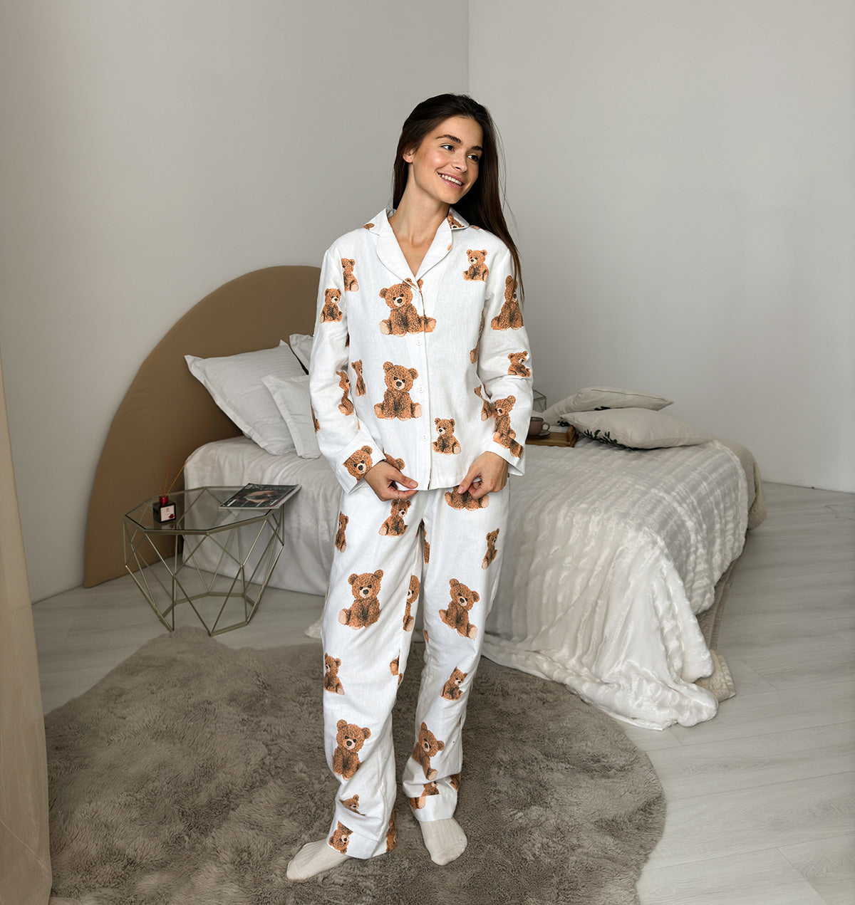 Жіноча фланелева піжама - твоя особиста зона комфорту для холодної пори року. Виготовлена з натуральної фланелі преміум якості (100% бавовна, Туреччина) з м'яким двостороннім начосом, вона ніжно огортає тіло, зберігаючи тепло та затишок з першого дотику.