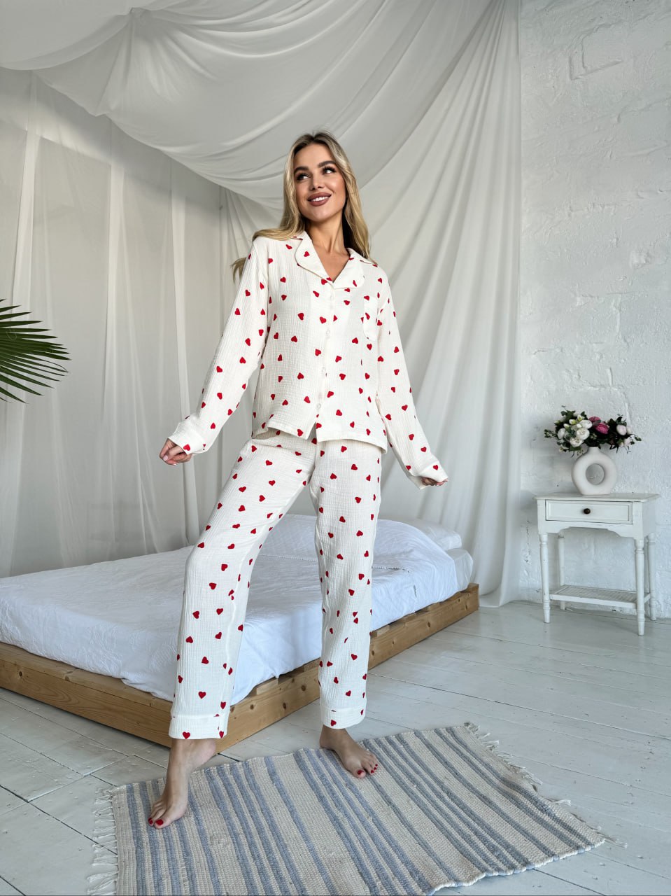 Муслінова жіноча піжама з довгим рукавом — це втілення затишку, ніжності та натурального комфорту для вашого сну й домашнього відпочинку.