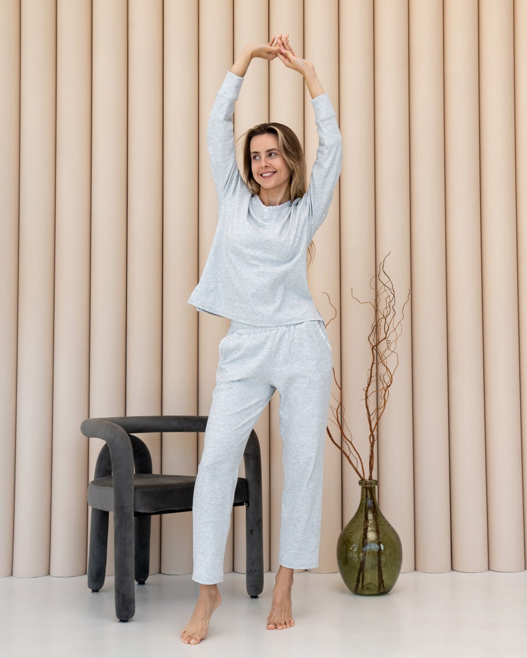 Модель має класичний крій із довгим рукавом та вільними штанами, що не обмежують рухів і забезпечують максимальний комфорт.
