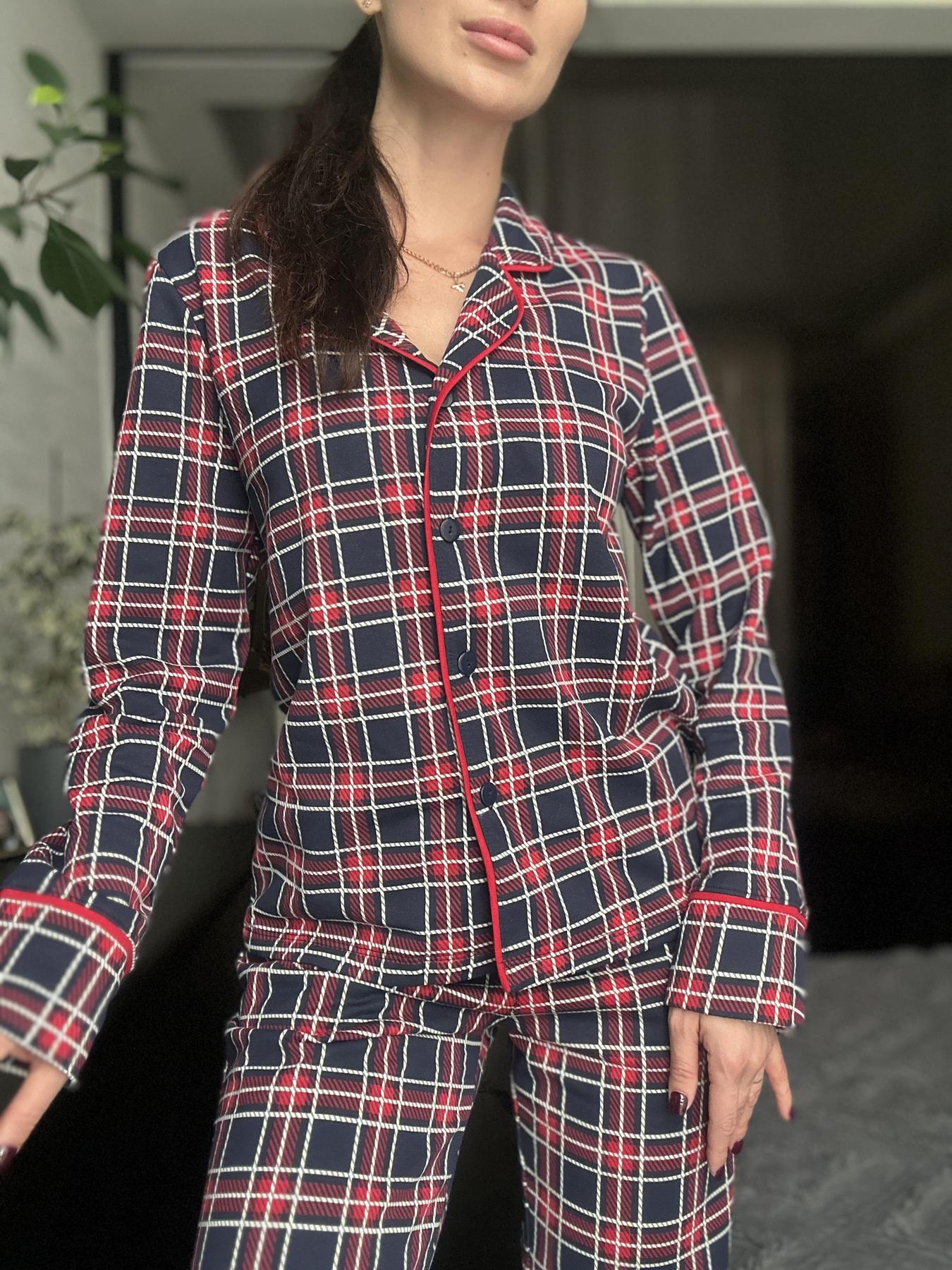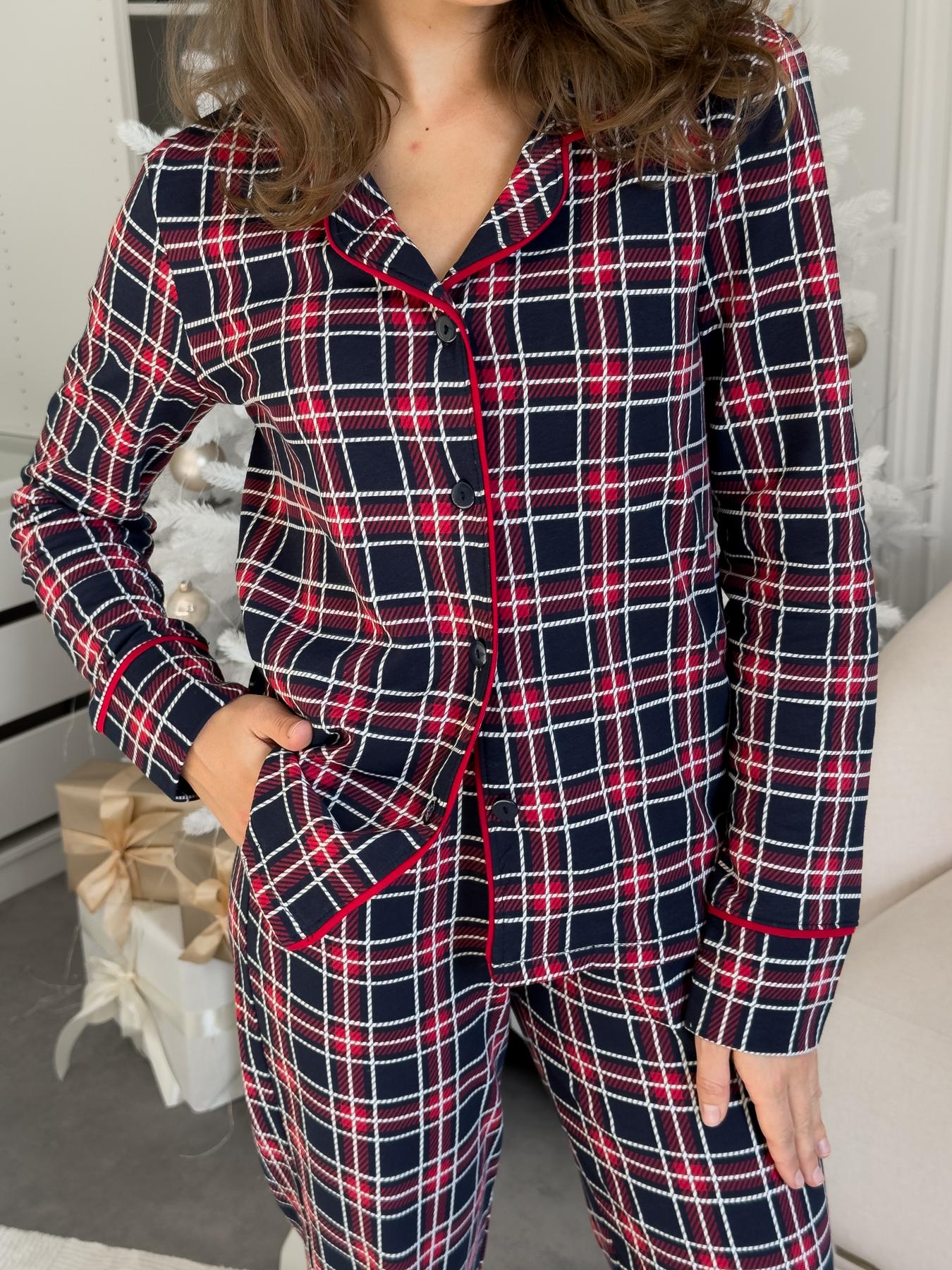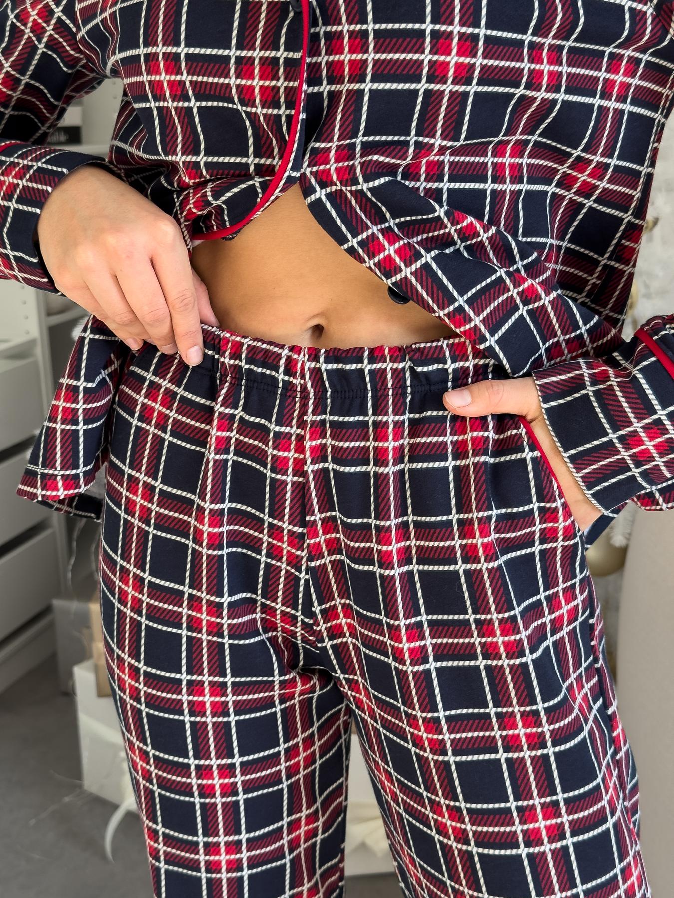 Жіноча тепла піжама з начосом у червоно-синю клітинку