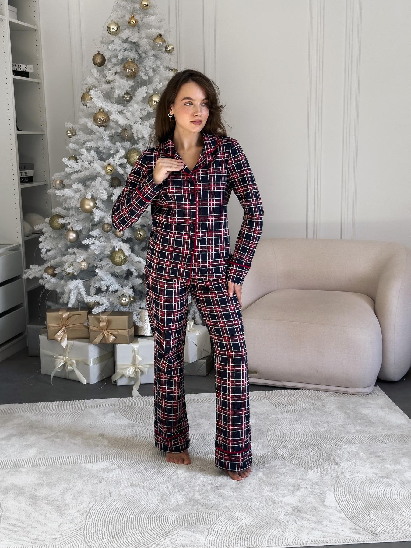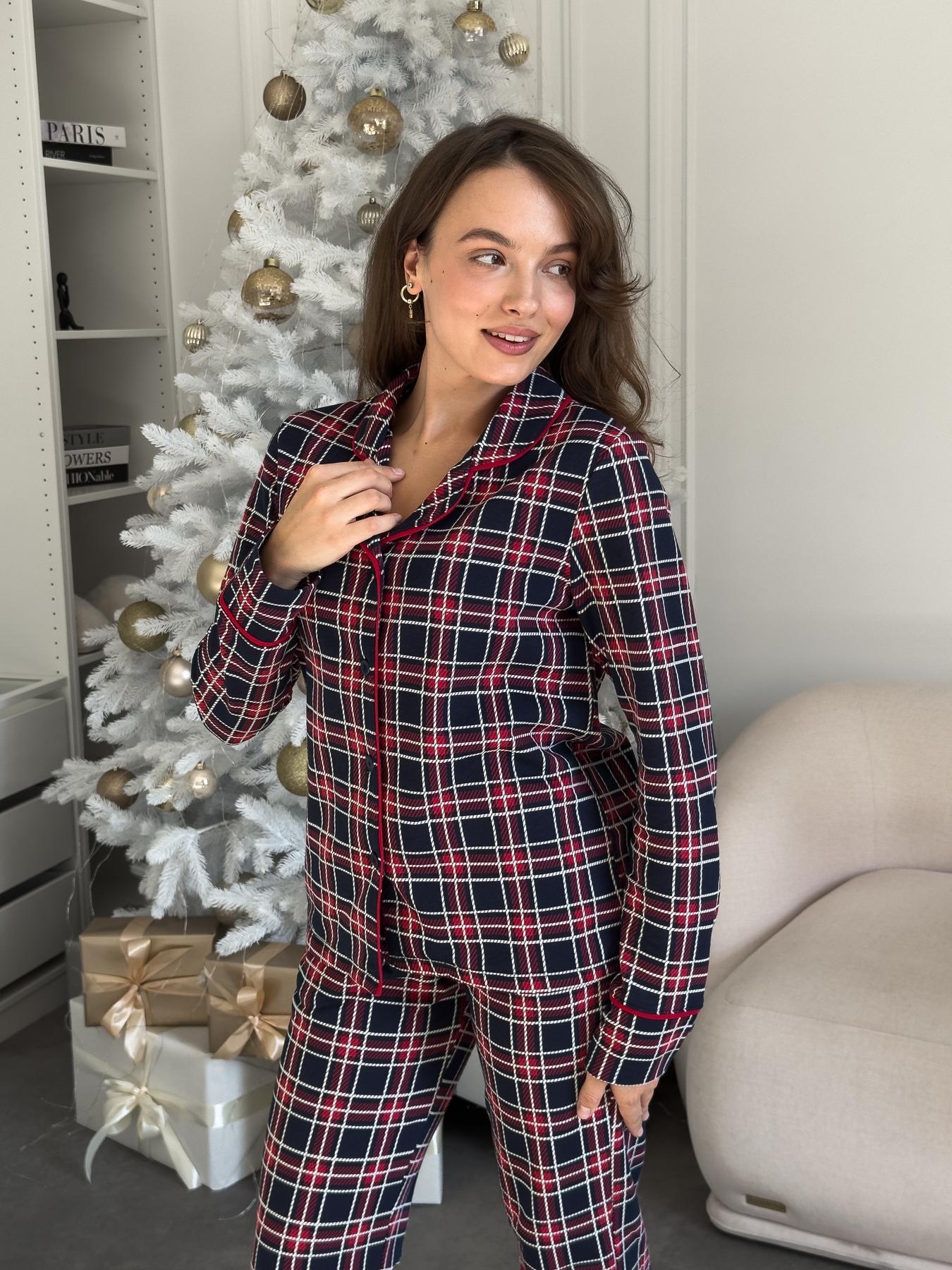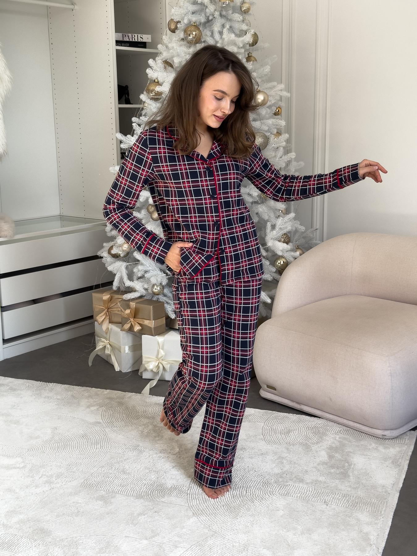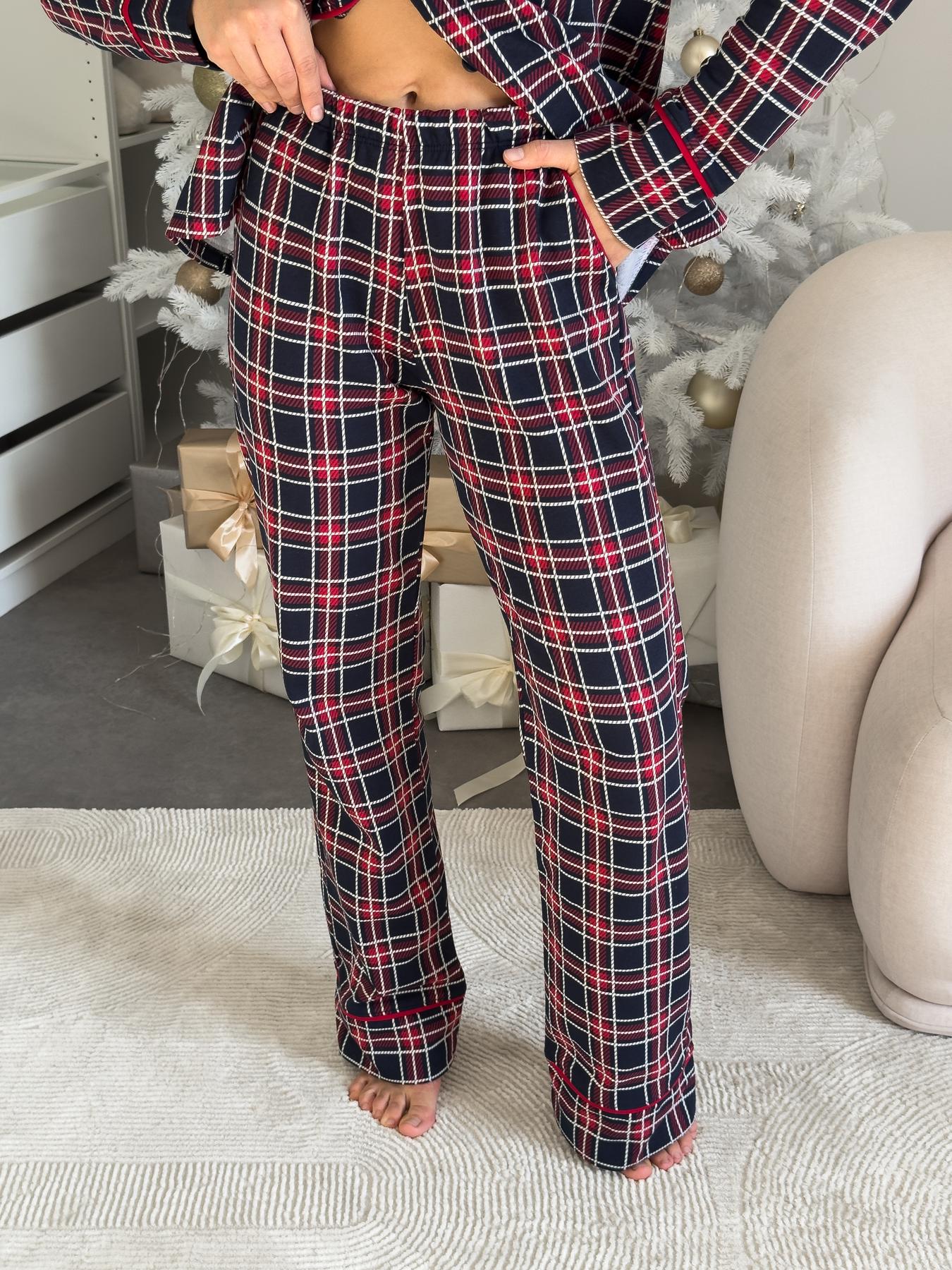 Жіноча тепла піжама з начосом у червоно-синю клітинку