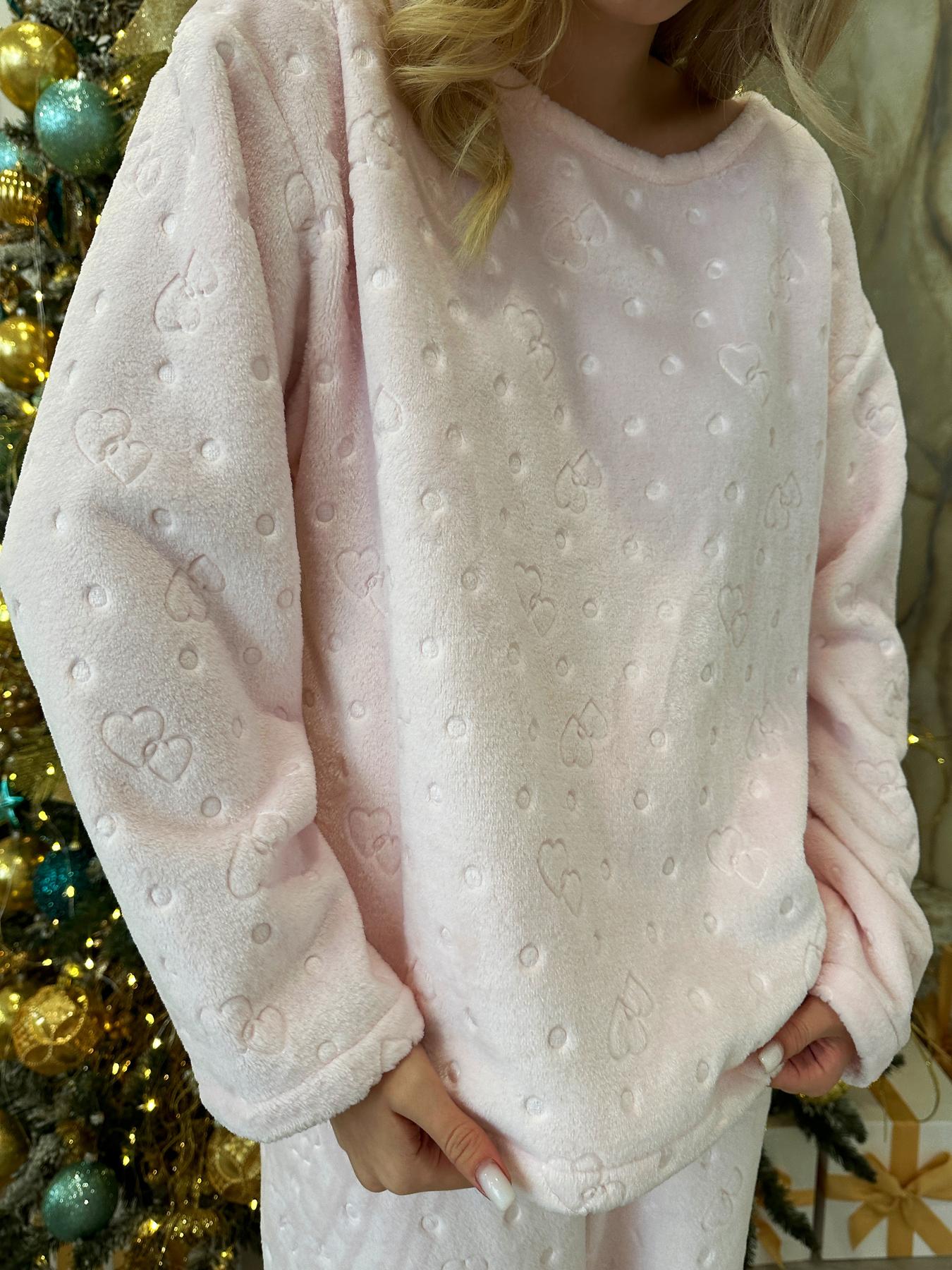 Тепла та надзвичайно м’яка жіноча піжама з велсофту - ідеальний вибір для затишних вечорів узимку чи прохолодної осені. Її можна носити як домашній костюм або як піжаму для сну.