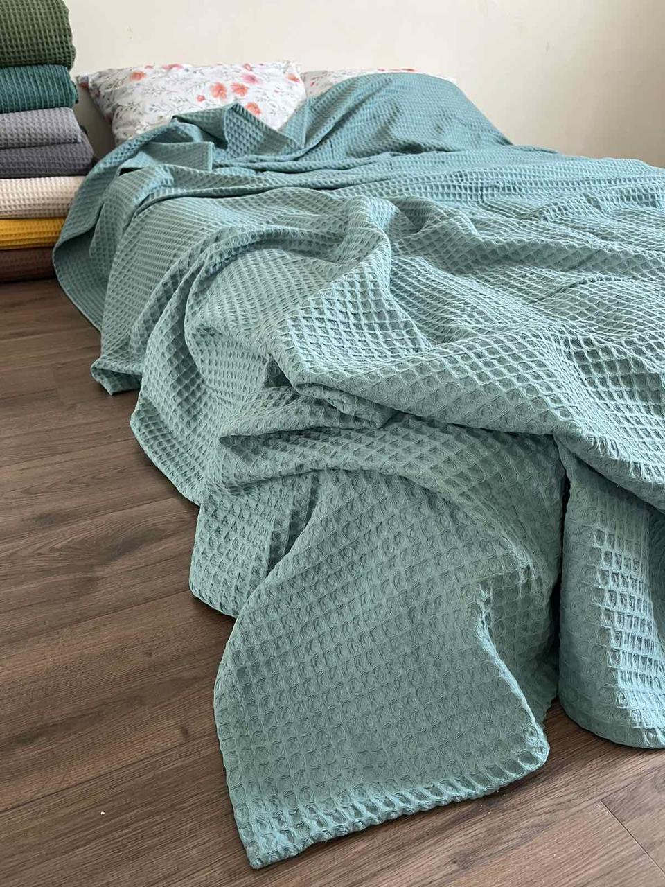 Покривала з грецької вафельки виготовлені із 100% натуральної бавовни.