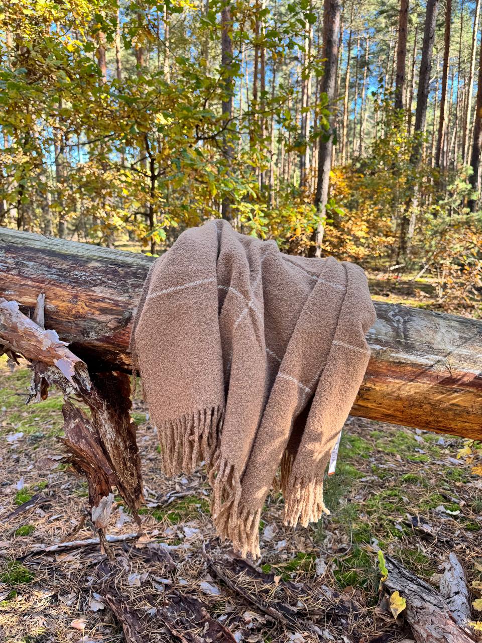 Вовняний плед із натуральних матеріалів - ідеальний вибір для тих, хто цінує тепло, комфорт і якість. Завдяки складу з 80% вовни, плед чудово зігріває в холодну пору року, залишаючись легким, м’яким і приємним на дотик. Структура букле додає йому об’єму та особливого шарму, а візерунок у бежеву клітинку гармонійно впишеться в будь-який інтер’єр - від класичного до скандинавського стилю.